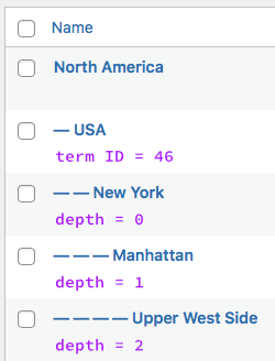 So if you set term ID 46 as “Parent term”, and use the second code example above to index only depth levels 0 and 1, the facet will only show “New York” and “Manhattan”.
