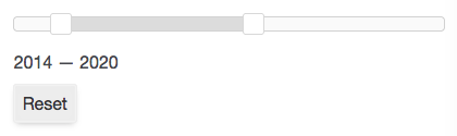 When that happens, the slider interface does not make sense anymore, and the Slider will be shown in a “disabled” state, similar to “ghost” choices in for example a Checkboxes facet. In this state, the whole slider is dimmed, the slider handles cannot be changed, and a “not-allowed” cursor will inform users that the slider is currently disabled.