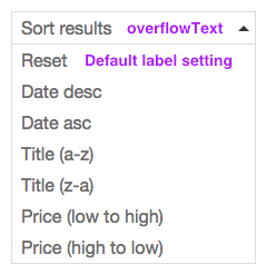 overflowText in a Sort facet displaying as fSelect.If you are displaying a Sort facet as fSelect, by adding the above code to your functions.php, you’ll notice that the first option in the dropdown has the same label text as the main facet label. By default, both labels will use the text set in the facet’s the “Default label” setting.